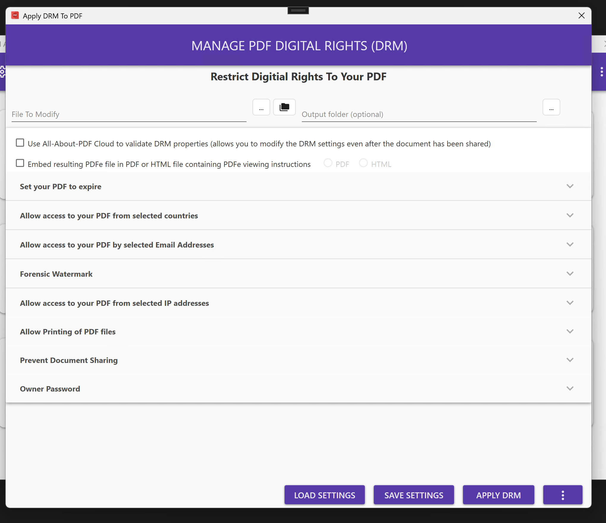 Below is a deep look at the powerful DRM controls included in All-About-PDF.